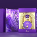 LUXURY PURPLE GIFT BOX PACKAGING Displayed in a deep-purple textured box with a marbled-violet interior and ornate golden arch chamber — a collector’s edition presentation piece.