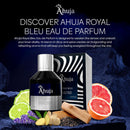 - 🛤️ MEMORABLE TRAIL: Leave a lasting impression wherever you go with Ahuja Royal Bleu Eau de Parfum. Craft a fragrance trail that turns heads and evokes fond memories, making every moment unforgettable. It's not just a scent—it's a statement of confidence and sophistication.
